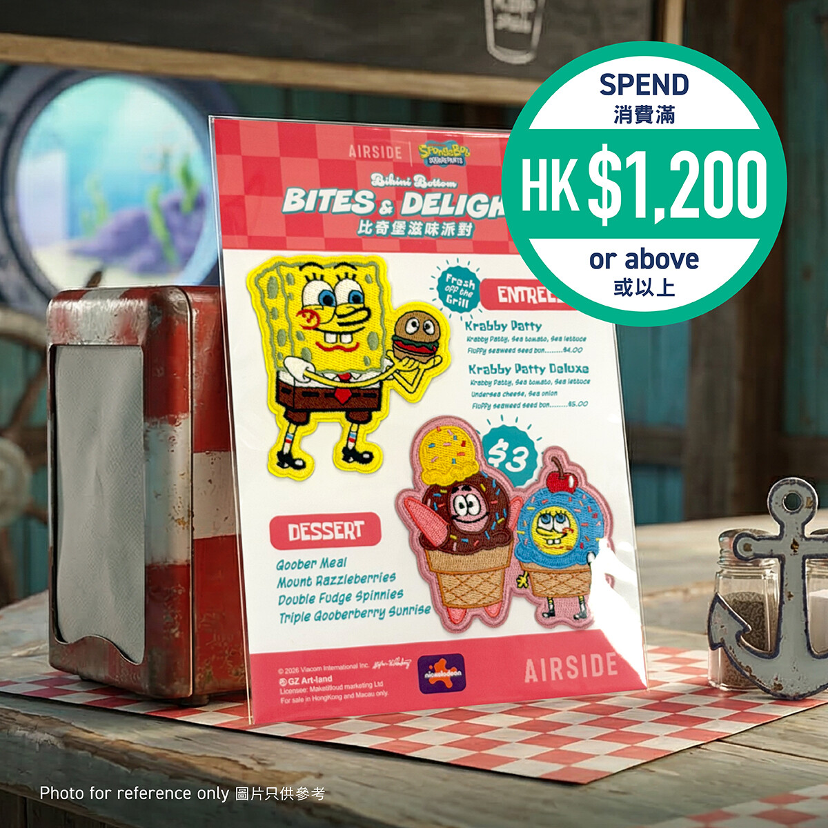 登記成為NF Touch會員並即日以電子貨幣累積消費滿HK$1,200^或以上(最多3筆交易)即可換領海綿寶寶限定刺繡貼紙1份*!